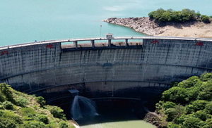 武義縣宣平溪內(nèi)庵水庫,中型水庫,水庫大壩壩型為混凝土三心圓雙曲拱壩,壩高80m,總庫容2500萬m3